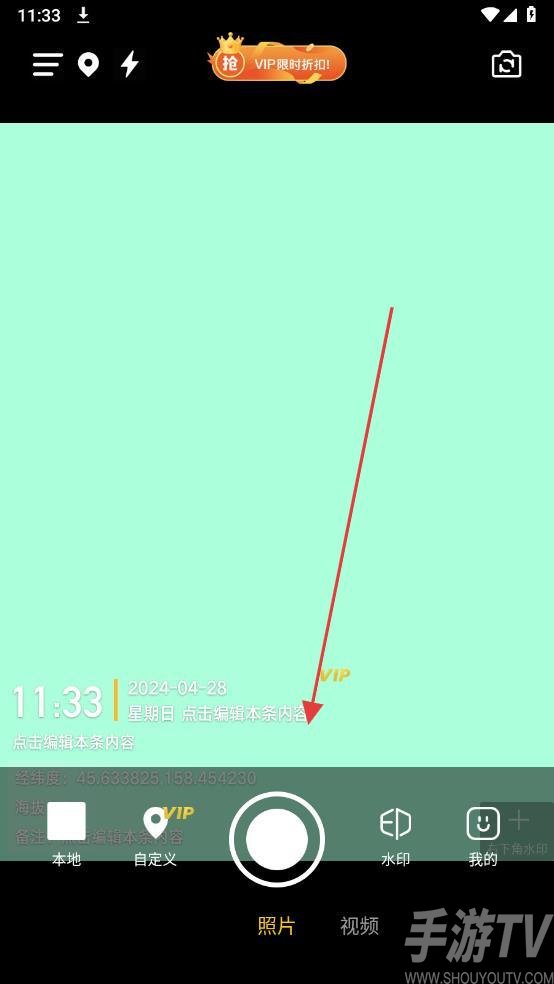 1、搞定水印相机拍摄页、时间等默认水印信息,点击点击编辑本条内容可自定义水印文字,搭配VIP标识,满足工作场景水印需求。