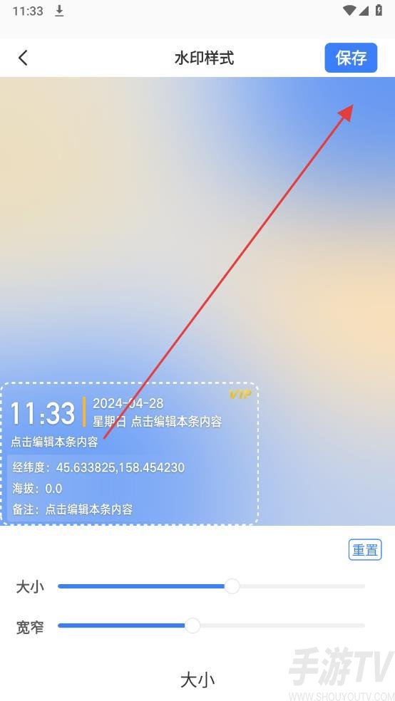 3、预览框展示水印效果,支持拖动大小、宽窄滑块微调样式,设置完成点保存,即可应用个性化水印,操作便捷高效。