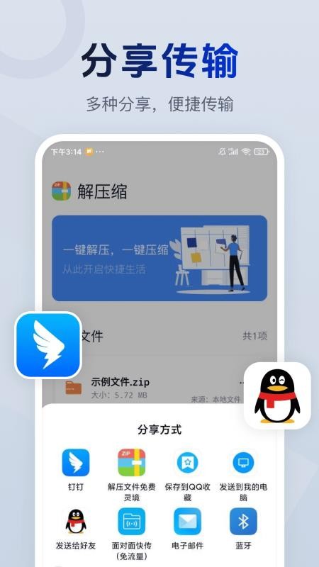 为用户提供了文件分享的渠道,对解压后的文件可以一键分享,随心分享文件。