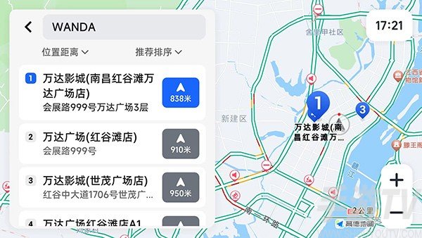 2、输入目的地后,会出现相应的位置选项和距离信息,点击相应的目的地,