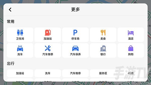7、我们还可以通过常用功能查看当前周边和目的地的加油站、停车场、美食、酒店、洗车、维修、银行和购物等场景,