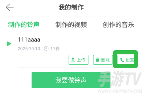6、找到刚才制作的铃声,点击【设置】设置为来电铃声就可以了。