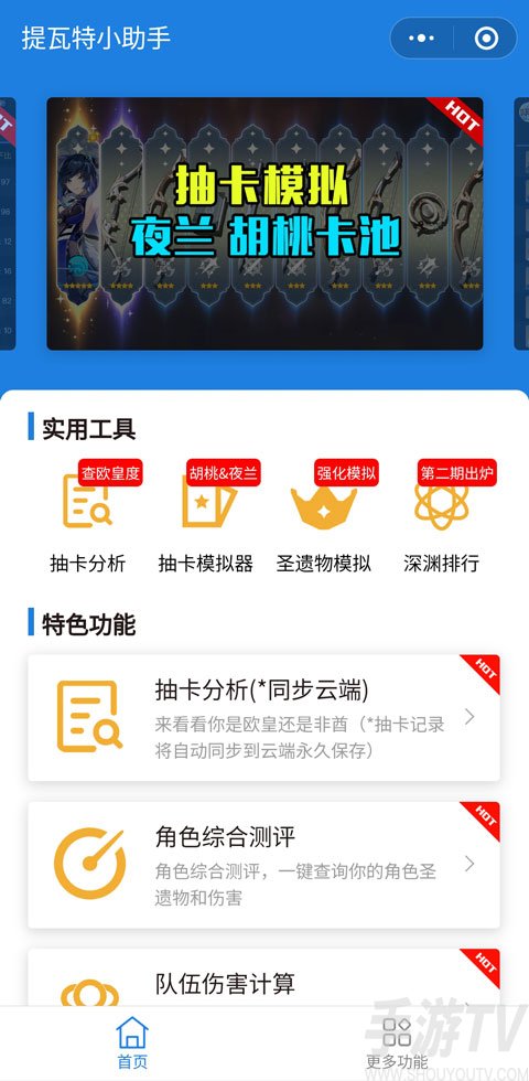 2、提瓦特小助手app能够为玩家提供好用的功能,包括了圣遗物评分、历史抽卡记录、原神账号价值等;