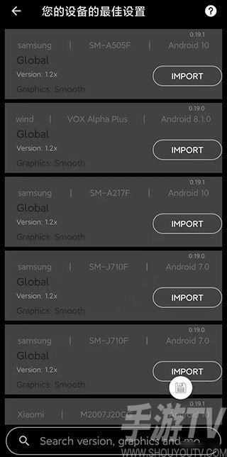 普通设备也能应用高端设备的图形参数,用户可以从列表中找到合适的设置方案并点击“Import(导入)”按钮,快速加载并启用所选配置。