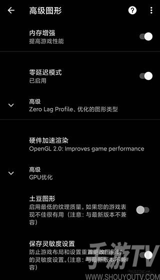 1、零延迟模式:优化的游戏配置。