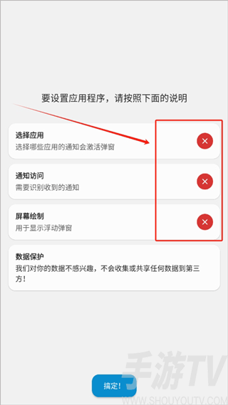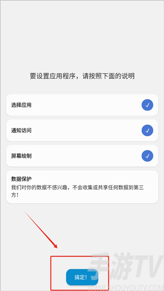 1、下载安装后我们需要给软件权限,给予全部权限之后,然后点击搞定进入到功能界面。