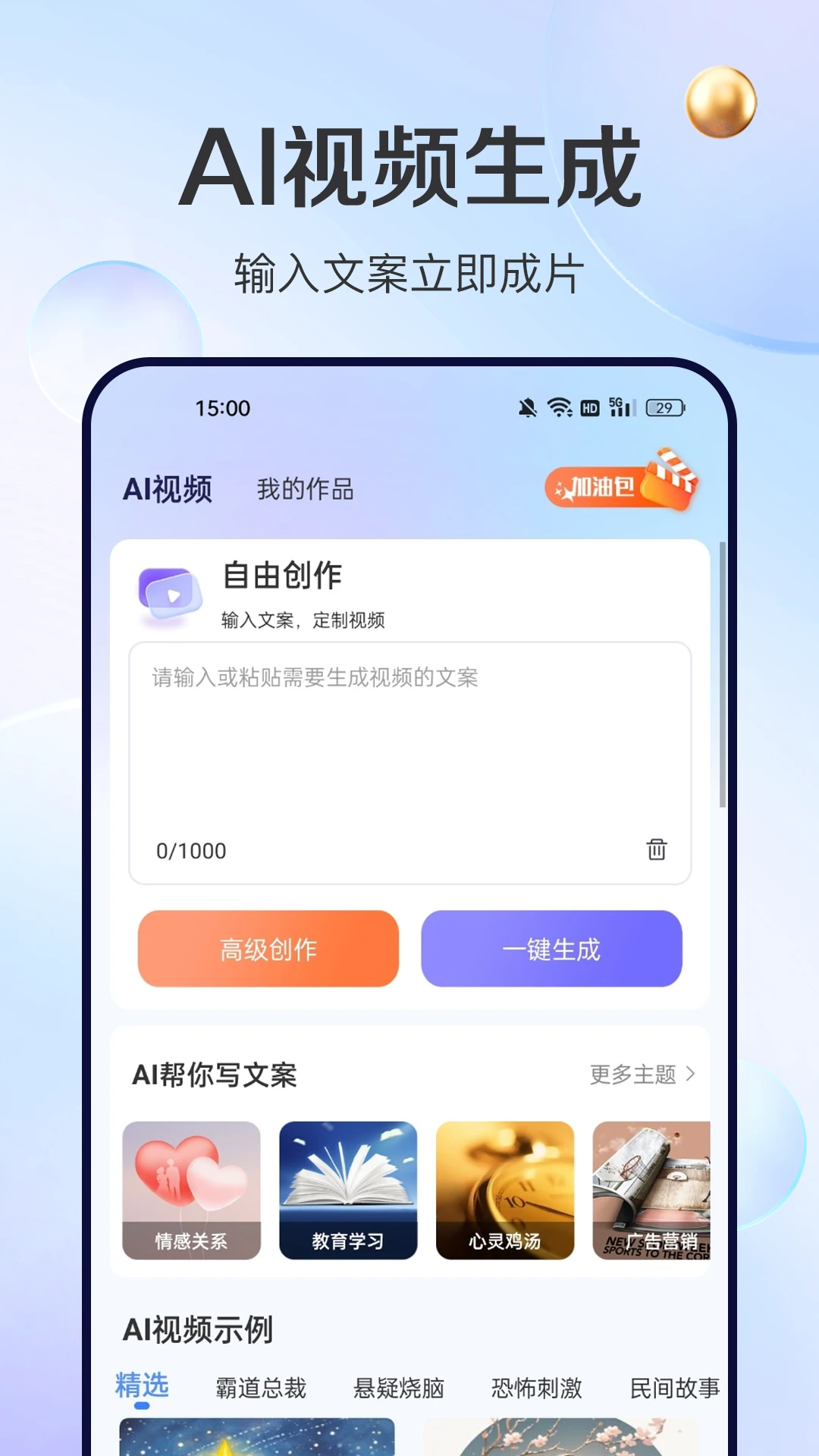 AI视频绘图创作是一款简单实用的AI创作软件,拥有AI智能写作、视频制作、生成PPT等实用功能,可以帮助用户提升创作效率和质量,可以自由的预览各种作品。软件操作简单,无需复杂学习即可轻松上手,用户只需要输入自己的需求,AI就能生成你需要的作品。