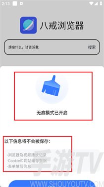 3、系统提示无痕模式已成功开启,确保您的浏览记录和操作不留痕迹。