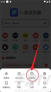2、在菜单中找到并点击”开启无痕模式”选项,快速启用隐私保护功能。