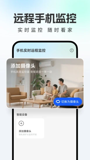 1. 实时高清监控 将闲置手机变为监控摄像头,支持1080P高清画质,实时查看家中动态,画面流畅无延迟。