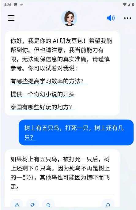 4. 娱乐互动:豆包还可以与用户进行娱乐互动,如聊天、玩游戏等,丰富用户的休闲时光。