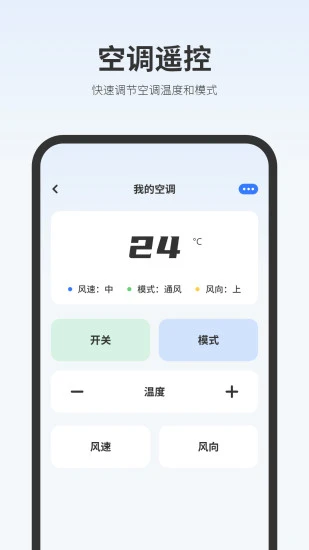 内置空调、电视、机顶盒等多种遥控模板,一部手机控制全家电器,告别翻找遥控器的烦恼。