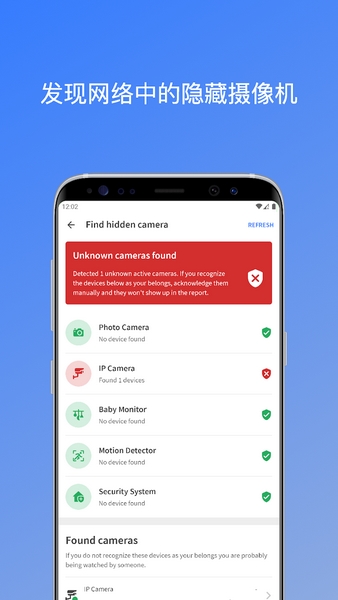 4、检测完毕后就可以看到周围是否有摄像头