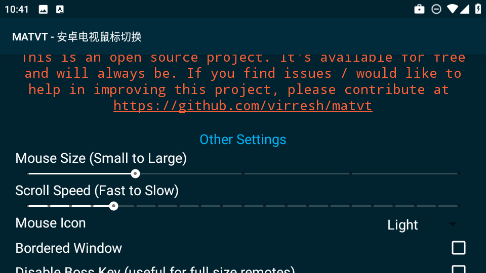 matvt模拟鼠标是一款开源的虚拟鼠标软件工具,能够让用户使用电视遥控器轻松控制光标,实现点击、滑动等精准操作,用户可以方便地控制AndroidTV上的光标,快速浏览内容或选择菜单项,无需购买额外鼠标或触控设备,只需轻松配置,就能快速上手,大幅度提升用户的使用体验。