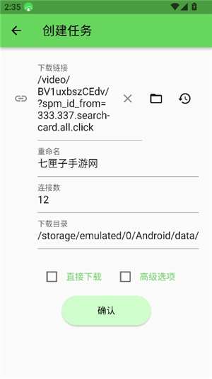 3、按照要求输入链接、名称、连接数等,然后点击确认