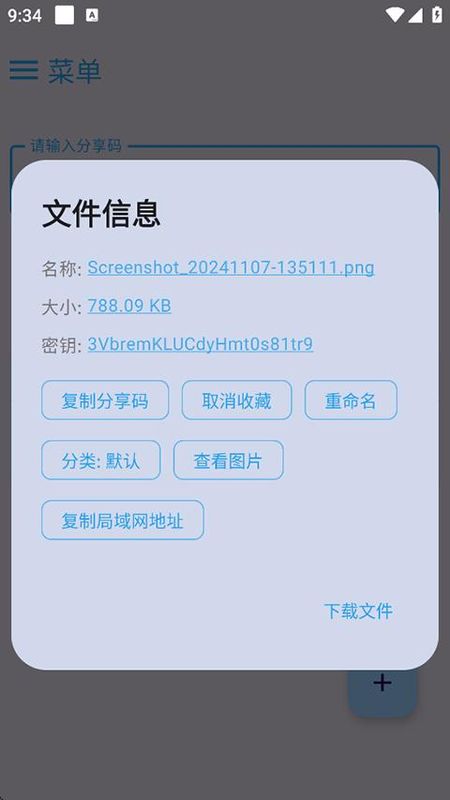文件分享码中包含了文件密钥和地址等信息,上传后将分享码发送给他人即可分享文件,如果丢失分享码,文件将永远无法被解密