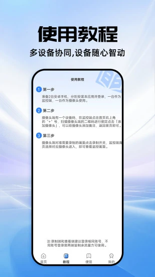 一键看家监控是一款智能监控手机端软件,软件拥有高清画质,能够实时查看家中动态,同时画面流畅无延迟,支持多设备同时连接,用户可以在多个设备上查看监控画面,一旦监测到异常则会向用户推送报警信息,轻松实现对家中情况的实时监控。