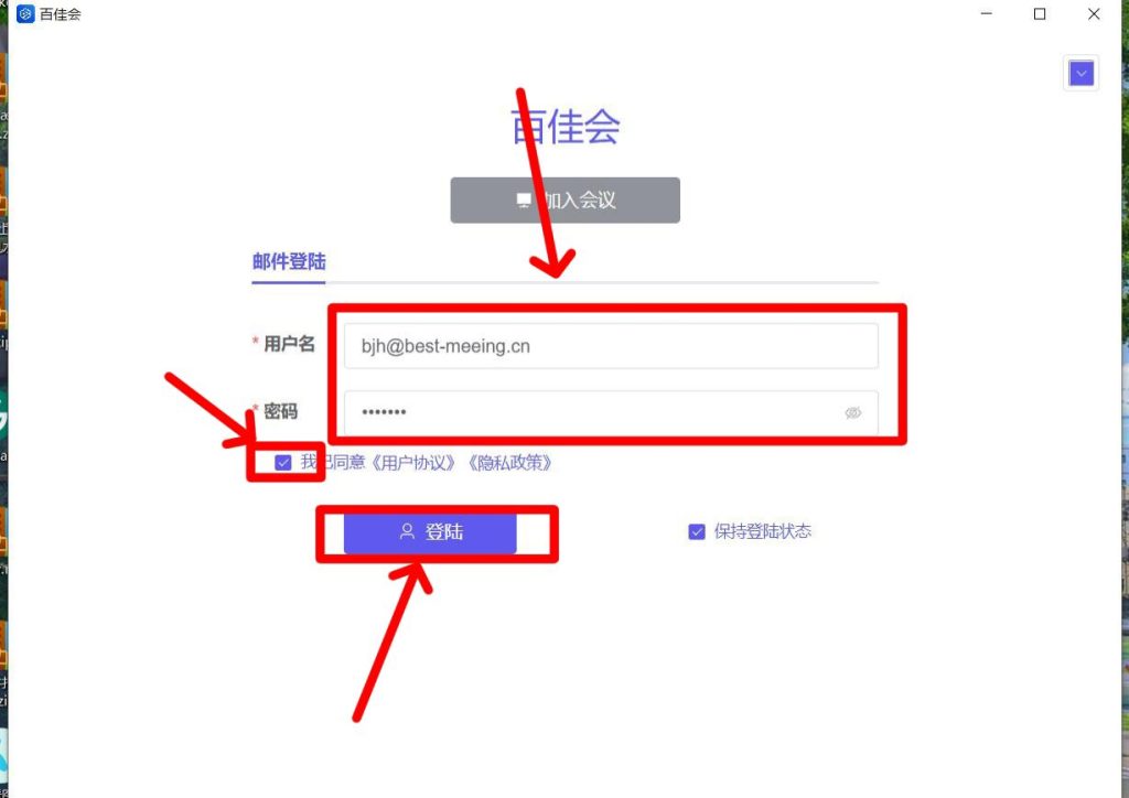 步骤1,打开百佳会软件输入账号和密码,点击登录。