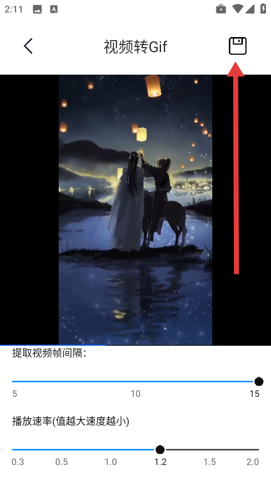 4、自定义调整好提取视频帧间隔以及播放速度之后,点击右上角的保存按钮