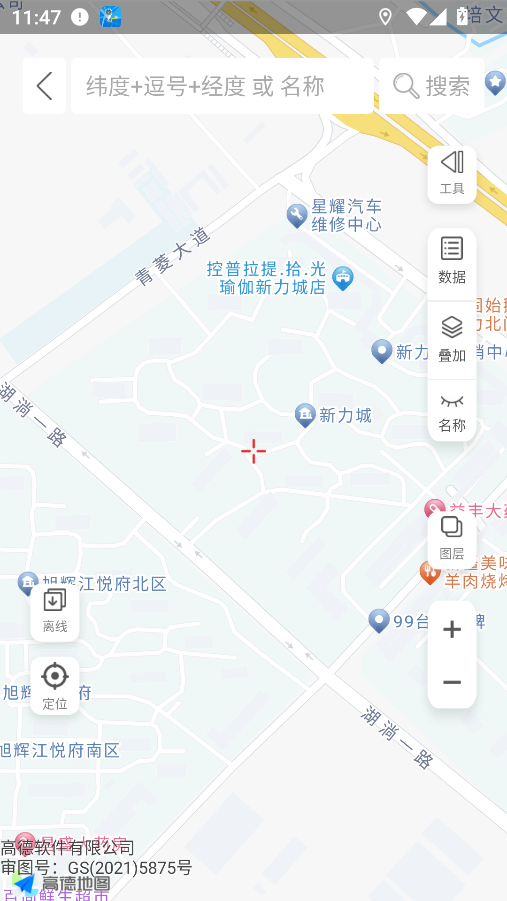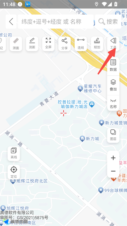 在地图上点击多点即可测量直线距离、路径长度或封闭区域面积,适合土地估算、路线规划。