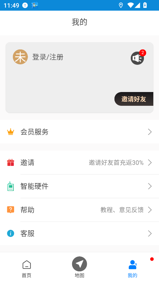 4、点击底部中间的地图按钮即可进行实时的定位。