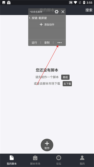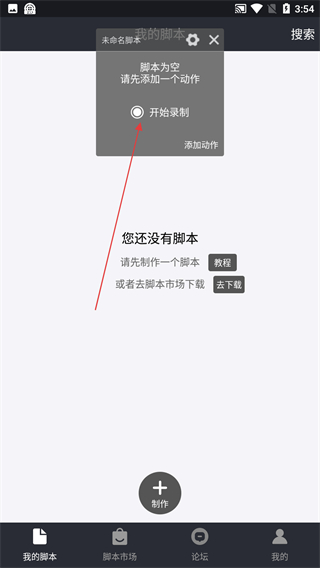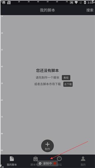 1、打开自动精灵APP,在我的脚本页面点击开始录制按钮。
