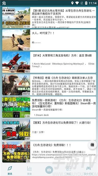1、下载安装好方舟生存进化助手盒子,在资讯页面中,海量游戏资讯实时为玩家提供;